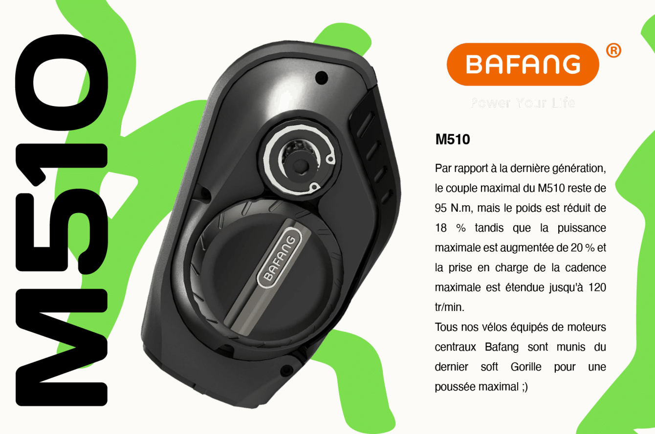 Moteur Bafang M510 250W 95Nm doté d’un SW unique @Gorille cycles, c’est le plus puissant homologué sur le marché !